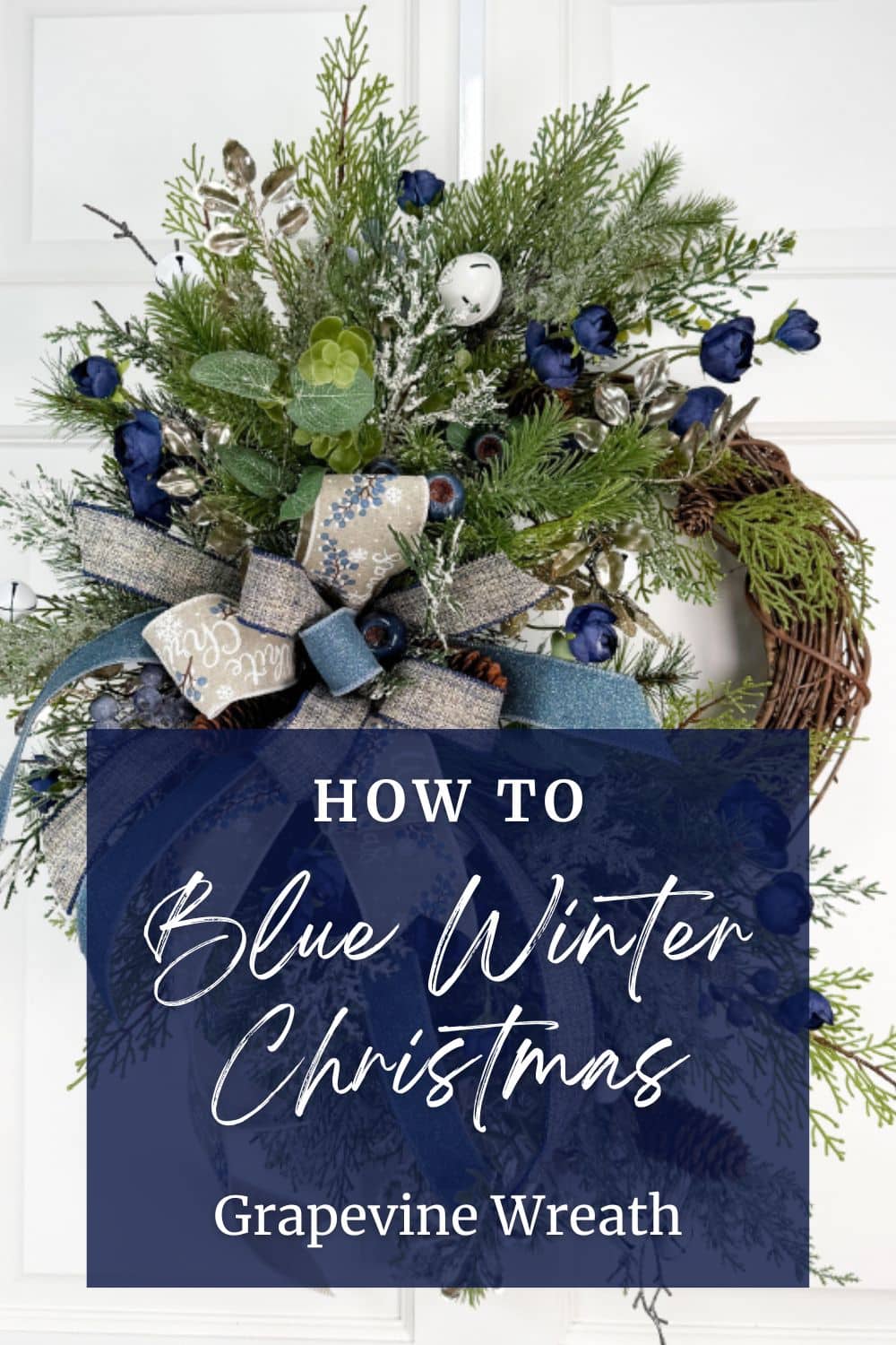 Follow along as I make a blue Christmas wreath, filled with metallic leaves, icy greenery, and white jingle bells. Deep blue florals make this design pop, along with blueberries and a coordinating bow.