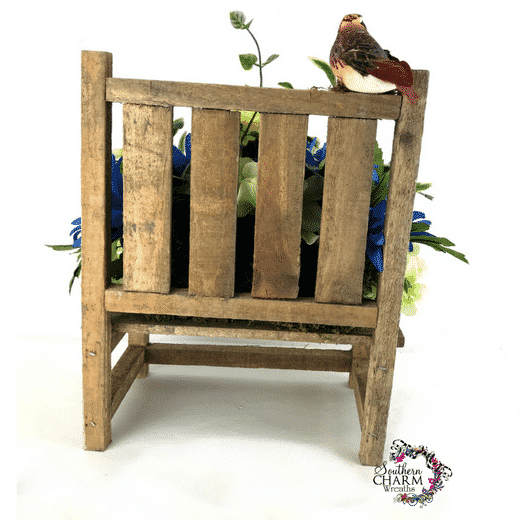 Wasn’t this fun? You could add spring flowers and maybe some eggs for a Spring arrangement or paint the bench red and make a holiday version!