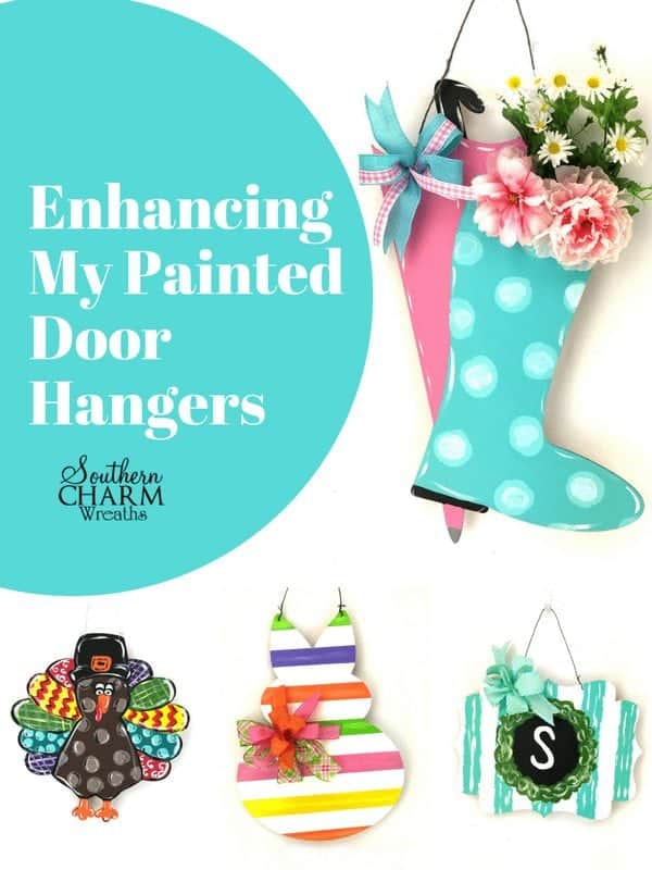 In the video you can see some of my DIY painted door hangers and how I chose to embellish them.