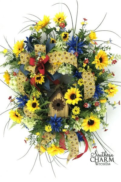 If you would like more tips on making spectacular wreaths like this, join me in my Wreath Making of the Month Club where each month I give you a new tutorial and supply list just like this sunflower wreath!