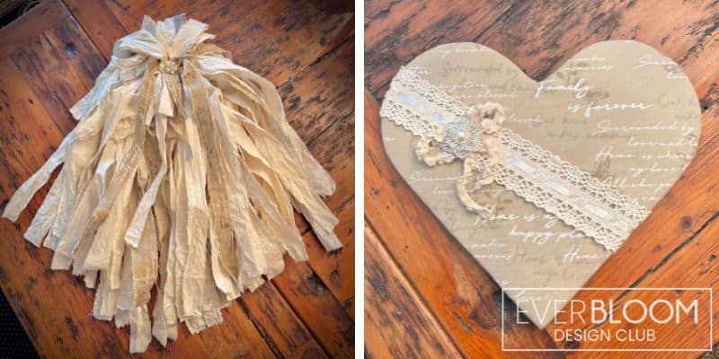 [EVERBLOOM] Neutral Rag Bow & Matching Heart Design By Taylor Tompkins | December 30, 2025 | 0 Rag Bow 2 Yards of 100% Cotton Muslin Fabric – Ivory .75 yards of 100% Cotton Complimentary Fabric 1 – Cup 100% Full Strength Liquid Sta-Flo Starch 1 – Rhinestone Brooch Matching Heart 1 – 9″ X 12″ Wooden Heart Cutout Batting Cotton Fabric Felt 1 – Ribbon 1 – Rhinestone Brooch