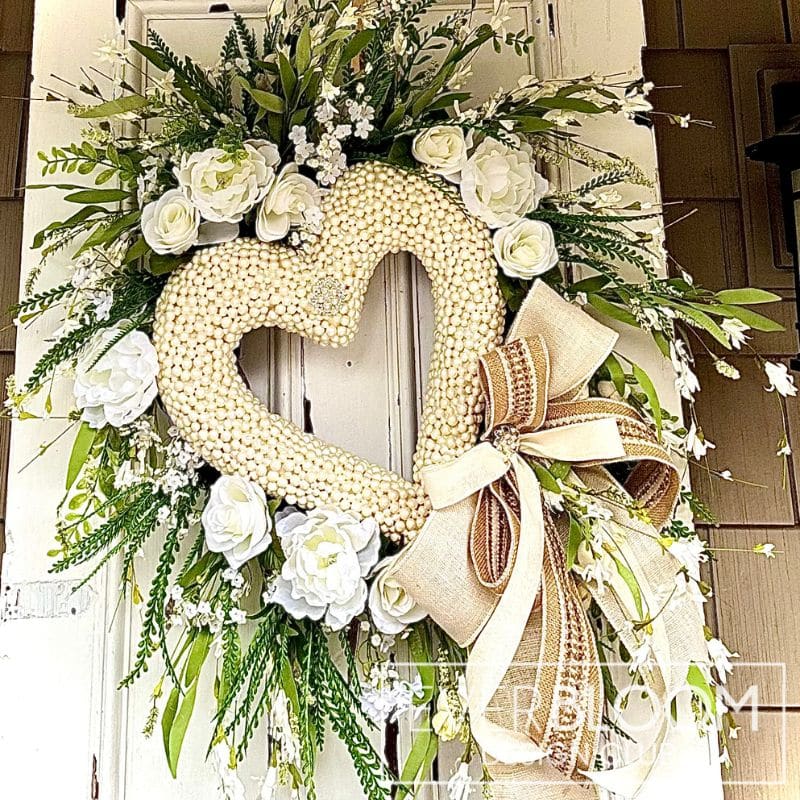 - 1 – Pearl-Looking Heart Wreath – 16.5″ X 17″