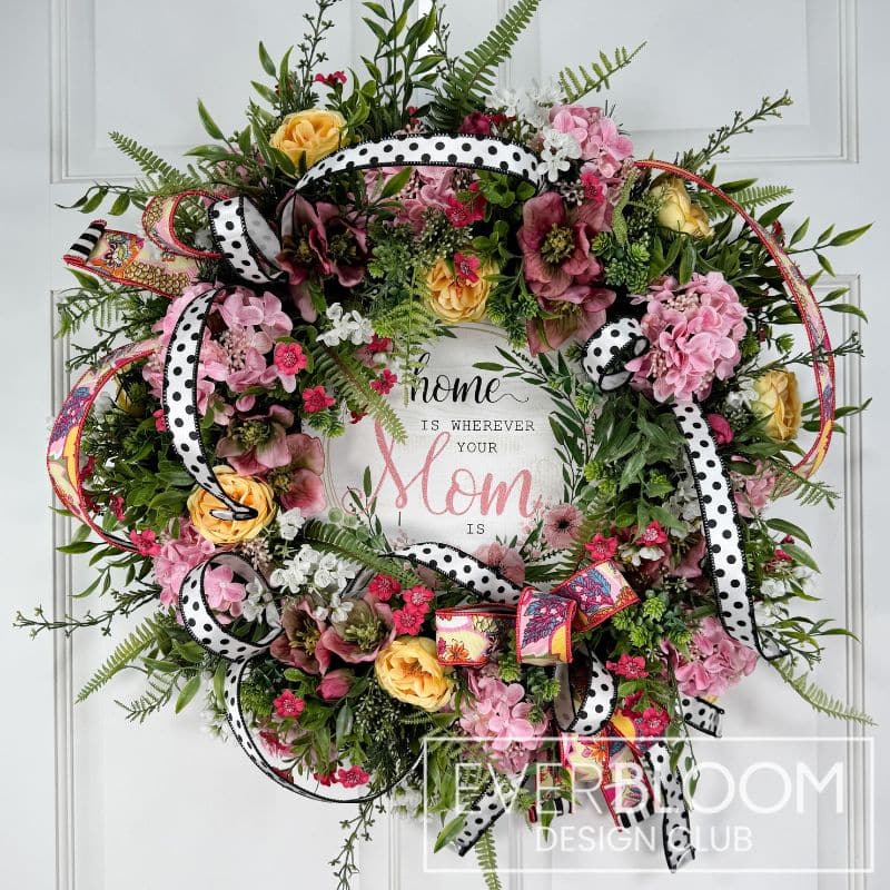 The inspiration for this wreath is the colorful pansy bush. These bright colors with coordinating ribbon and filler flowers are the perfect way to bring cheeriness to your front door this spring and summer. Thank you to Greenery Market for bundling these supplies together for our members at a discounted rate. Supplies from Greenery Market…
